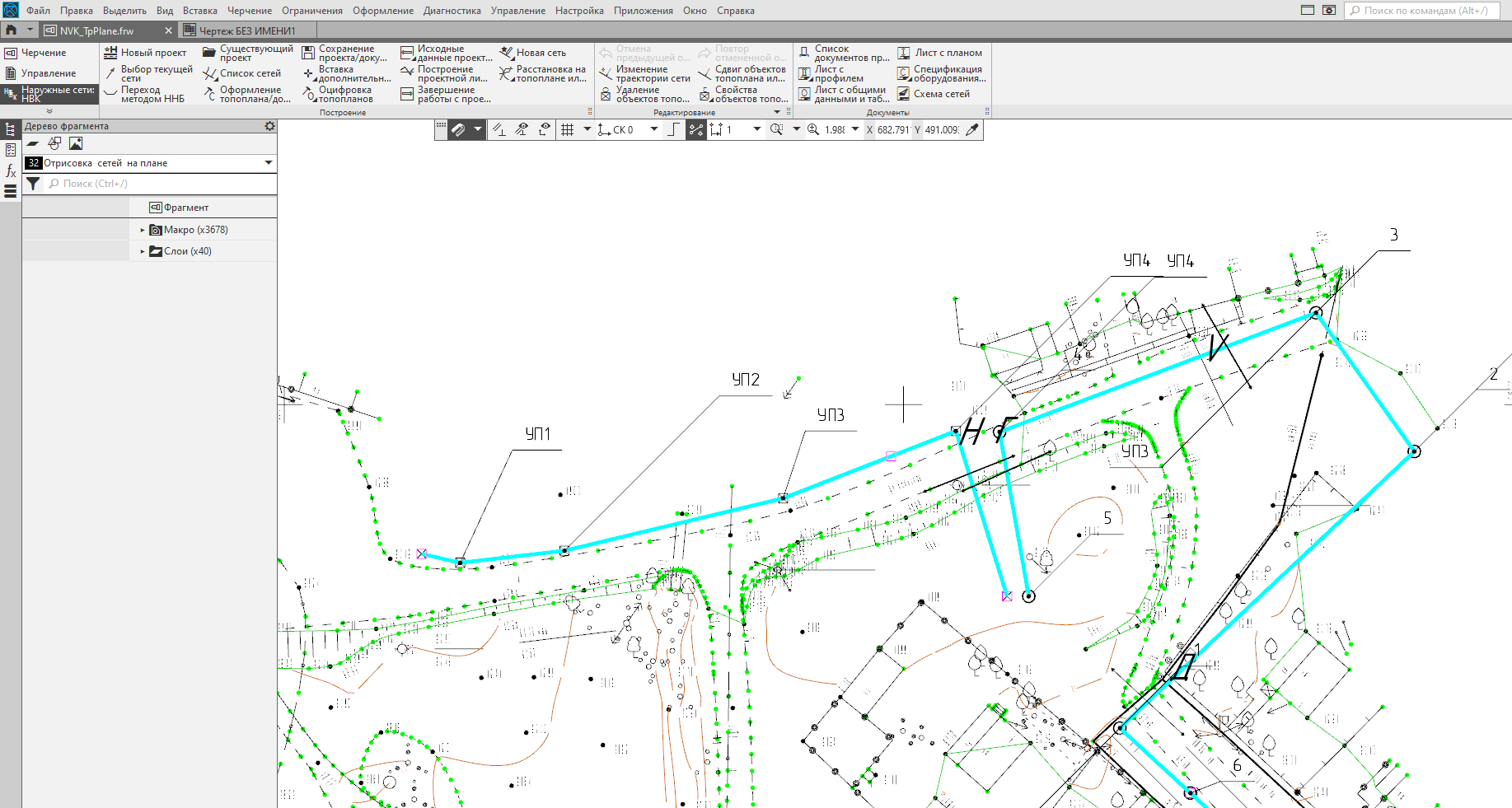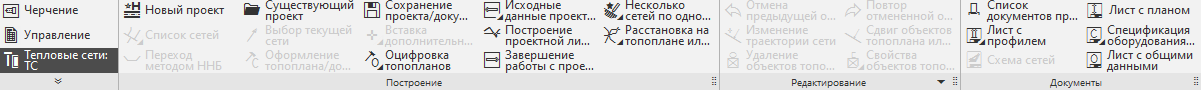 - Создание проекта тепловой сети: построение трассы, задание параметров труб и дополнительных элементов;