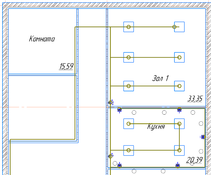 - При построении схем тепловых сетей информация переносится из плана автоматически, что обеспечивает согласованность данных и сокращает время на ручной ввод.