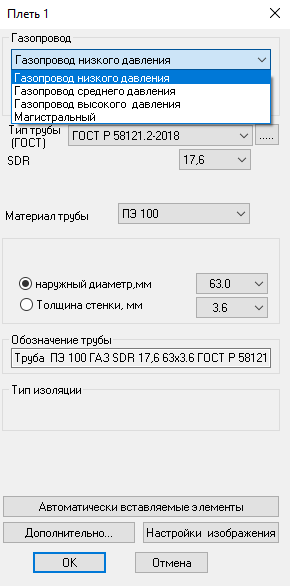 Рис.55 – Создание участка трассы. Выбор параметров газопровода