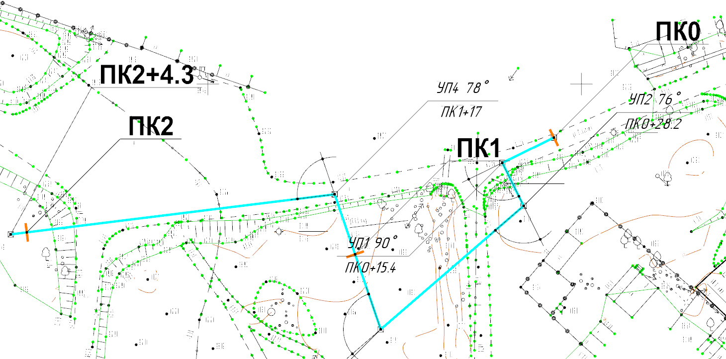 Рис.56 – Трассировка газопровода с автоматическим вводом пикетов