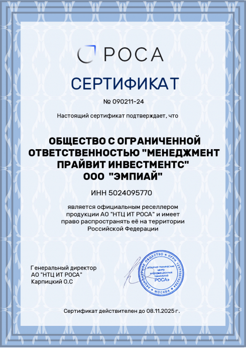 Клиентская лицензия для подключения к платформе РОСА Центр управления, предоставлет право запуска до 20 устройств.